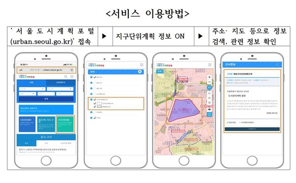 지구단위계획 온라인 열람 서비스는 서울 전역 지구단위계획구역 상세정보 데이터베이스(DB)를 구축하고, 이를 GIS(지리공간정보) 형태로 인터넷 지도에 시각화한 것이다. 홈페이지에 접속하면 별도의 프로그램을 설치하지 않고 바로 열람할 수 있다. 모바일 기기로도 이용 가능하다.