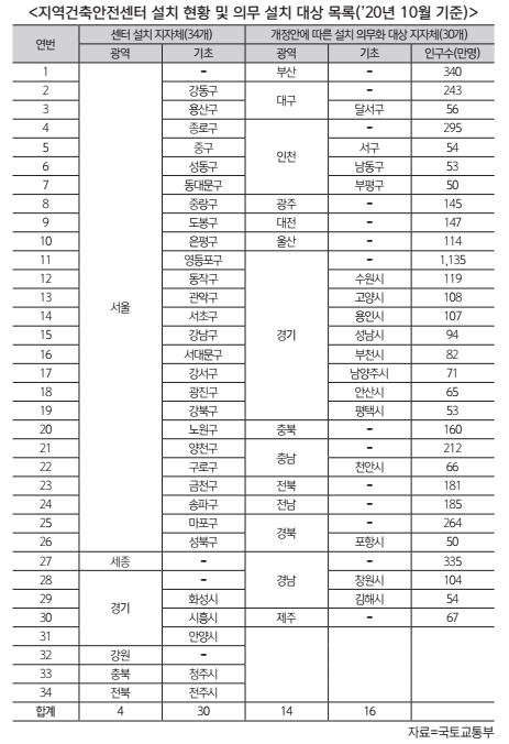 현행법상 센터 설치 여부는 지자체 임의 선택사항이다. 그러다보니 현재 센터가 설치된 지자체는 4개 광역자치단체와 30개 기초자치단체에 불과하다. 인력 배치에 따른 재정 부담 때문인데, 지난 10월 7일에는 광역지자체와 인구 50만 이상 대도시에 센터를 의무화하는 건축법 개정안이 발의되어 이 법이 지난 11월 11일 국토법안심사소위원회를 통과해 올 연말 국회 의결 가능성이 높아졌다. 2022년 1월부터 전국 17개 광역지자체에 센터가 설립되어 인허가 업무를 맡게 될 예정이다. 소위원회는 센터 운영을 위한 가장 큰 걸림돌이 예산 문제인 까닭에 내년도 편성 예산 20억 원외에도 지자체의 재정 부담을 덜 수 있는 추가대책을 국토부에 주문했다.