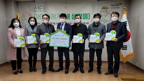 경산지역건축사회는 12월 10일 착한 건축사 나눔릴레이에 참여한 건축사회원들과 함께 나눔현판식 및 일시후원금 100만 원, 경북공동모금회 후원금 200만 원의 전달식을 가졌다. 착한 건축사 캠페인은 지난 4월 경북 내 소외계층 아동 지원을 위해 진행한 활동 중 하나로 19개 지역 회원들의 자발적인 후원을 통해 주거빈곤아동지원을 목적으로 진행된 나눔릴레이 캠페인이다. 박종화 경산지역건축사회장은 “초록우산 어린이재단과 함께 지역 내 주거 빈곤아동을 돕는데 마음을 모아준 건축사 분들에게 다시 한 번 감사드린다”며 “앞으로도 경산지역건축사 회원들과 아이들에게 쾌적하고 안전한 환경을 제공할 수 있도록 힘쓰겠다”고 소감을 밝혔다.