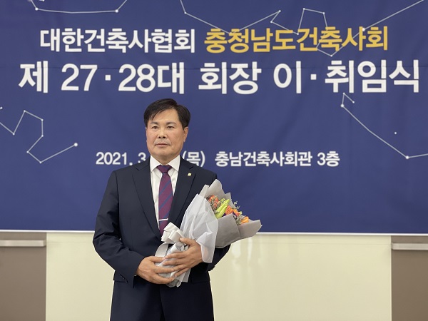 충청남도건축사회 제28대 정광영 회장 취임식이 3월 25일 충남건축사회관 대회의실에서 전임 김양희 회장의 이임식과 함께 개최됐다.