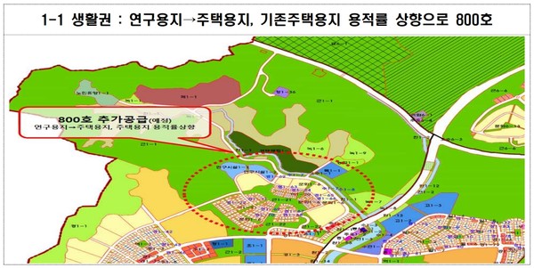 1-1생활권에서는 북측 단독주택지의 용적률을 높이고 인근 연구용지도 주택용지로 바꿔 800가구를 추가 공급한다. 이 지역에서는 테라스형 통합 공공임대주택도 함께 공급된다. 5-2생활권에서도 용적률 상향으로 400가구를 추가 공급한다.