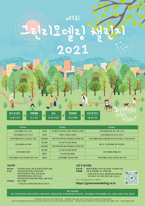 국토부는 다양한 연령대의 관심과 호응을 유도하기 위해 여러 부문별로 관련 작품을 모집·시상하고, 다양한 매체를 통해 알려 그린리모델링 활성화를 유도할 계획이다.