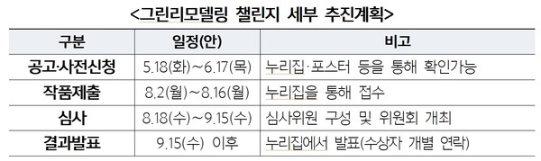 공고·사전신청은 5월 18일부터 6월 17일까지 한 달 동안 그린리모델링 챌린지 누리집(https://greenremodeling.re.kr)을 통해 진행되며, 신청자는 8월 2일부터 16일 사이에 역시 누리집을 통해 작품을 제출해야 한다.