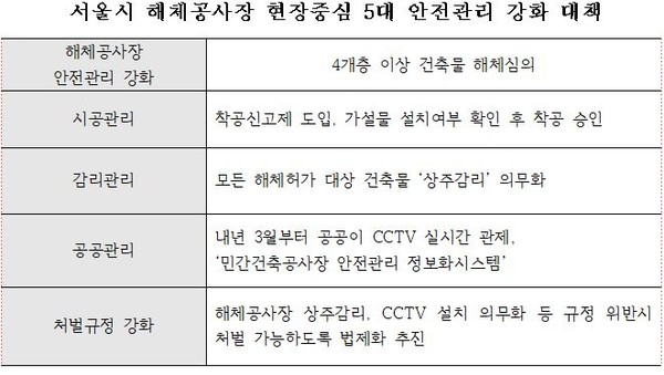 ‘해체공사장 5대 안전관리 강화’ 대책 발표
