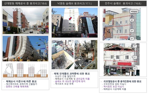 앞서 작년 5월 해체공사의 안전수준을 제고하기 위해 ‘건축물 해체공사 허가제도’가 포함된 '건축물관리법'이 시행됐다. 해체공사 관련 사고를 예방하기 위해 신고만으로 가능했던 해체공사를 지자체의 허가사항으로 강화하고 해체계획서도 함께 검토 받도록 개선한 것이었다.