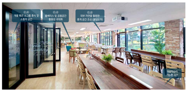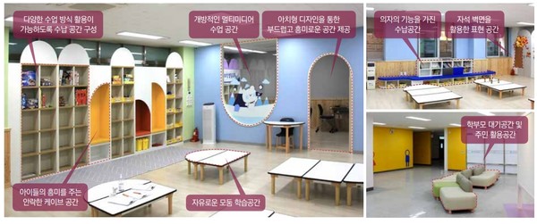 먼저 ‘공간혁신’ 모델은 기존 학교와 차별화된 디자인이 특징이다. 비효율적인 공간 배치와 기존 교실에서 느낄 수 있던 위압적인 분위기 등을 미래지향적 디자인으로 개선한다는 계획이다.