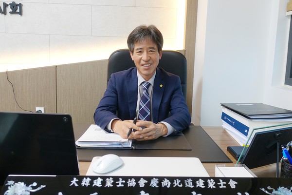 이재철 경상북도건축사회장은 규제혁신을 무엇보다 강조했다. 건축사들이 변화된 시대에 잘 대응해 역량을 잘 발휘하기 위해서는 불필요한 규제가 없어야 한다는 게 이 회장의 지론이다. 지난 6월 포항에서 ‘건축민원규제완화 대토론회’를 개최해 ‘경북형 건축혁신 방안’ 준비를 위한 자문위원 구성을 마쳤으며, 임기 중 주요 과제로 계속 추진한다. 업무대행비 현실화와 협동조합을 통한 수익구조 다변화 등 회원들의 먹고 사는 문제 해결에도 중점을 두고 있다. 임기 동안 규제 때문에, 먹고 사는 문제 때문에 건축사들이 설계에 집중하지 못하는 현실을 꼭 바꿔나가겠다는 이재철 회장으로부터 취임 후 정신없이 흘러간 지난 1년 이야기를 들어봤다.