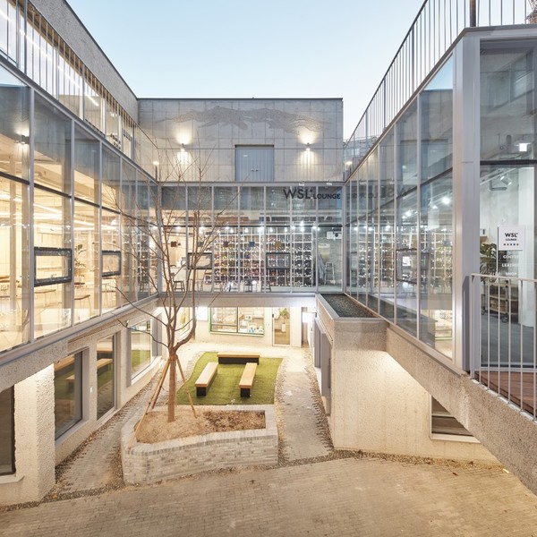 1층의 9개 분동형 건물은 재현된 골목길에 접해지도록 했고 중정을 둘러싼 ㅁ자형 2층은 실내 어디서든 외부와 시각적 혹은 공간적으로 연계되며 내부 자연채광과 환기를 가능하게 했다.