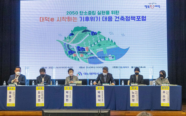 대덕구는 이번 토론에서 도출된 의견을 종합적으로 검토해 실현 가능한 사안에 대해서는 조례 등으로 법제와해 주민이 체감할 수 있도록 체계적이고 실질적인 기후윅 대응 등 건축정책 세부계획을 마련할 계획이다.