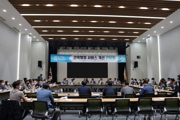 강원도건축사회와 강원도는 지난 9월 23일 강원연구원 대회의실에서 과도한 규제, 불필요한 행정절차, 처리기간 지연 등 건축 인허가 행정의 불신을 과감히 해소하여 도민들로부터 환영받을 수 있는 건축 인·허가 환경을 조성하기 위해 강원도건축사회·강원도, 18개 시·군 관계공무원 70여명이 모여 간담회를 개최하였다.