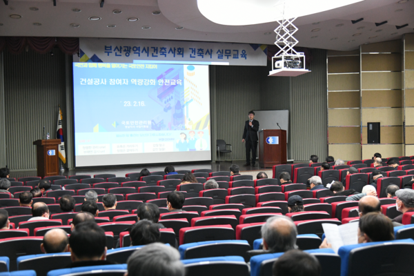 부산광역시건축사회는 2월 16일 올해 첫 번째 건축사 실무교육을 실시했다. 대한상공회의소 1층 대강당에서 진행된 교육에는 총 131명이 참석해 ‘소규모 건축물 건축공사 안전관리’ 주제의 강연을 이수했다.