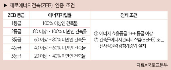 당초 올해부터 민간아파트에도 적용하기로 했던 ‘제로에너지 건축물(ZEB) 인증’ 의무화 제도가 1년간 유예된다.