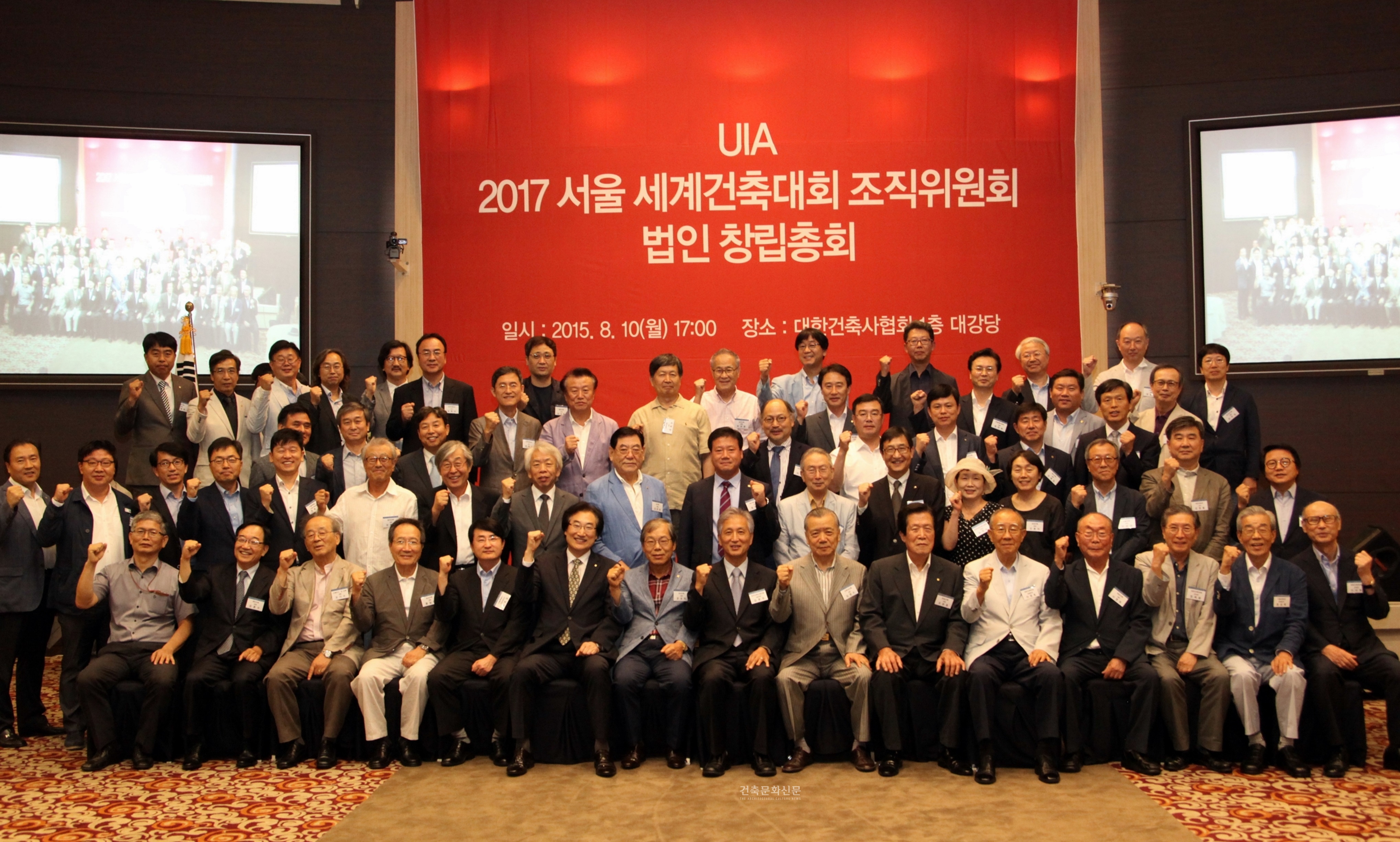 ‘사단법인 UIA 2017 서울 세계건축대회 조직위원회’는 8월 10일 대한건축사협회 대강당에서 FIKA 3단체 회장 및 박경립‧온영태 국가건축정책위원회 부위원장, 정유승 서울특별시 주택건축국장 등 약 80명이 참석한 가운데 창립총회를 열었다. 지난 2011년 10월 동경에서 개최된 UIA 총회에서 서울은 싱가포르와 멕시코시티를 제치고 ‘2017년도 UIA 세계건축대회’ 유치에 성공했다. 그 이후 2013년 4월에는 FIKA와 서울시가 대회의 성공 개최를 위한 업무협약을 맺었으며, 같은 해 8월에 UIA 서울세계대회 조직위원회가 발족됐다.