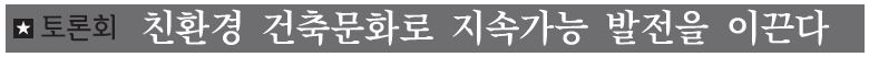 지속가능건축문화제 내 정책토론회를 개최하여 지난 5년간 ‘친환경건축’을 어젠다로 진행해 왔고 현재는 안산시 친환경 건축 인증시스템 구축을 논의하는 단계다.