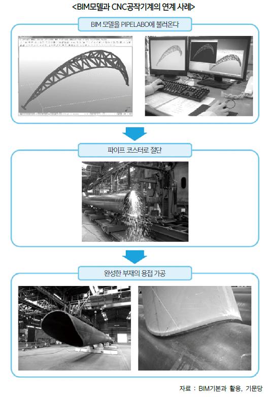 BIM모델 데이터를 활용해 공장의 CNC(컴퓨터 수치제어)공작기계와 연계시켜 강관이나 H형강 등을 자동 절단하는 시스템이 개발됐다.