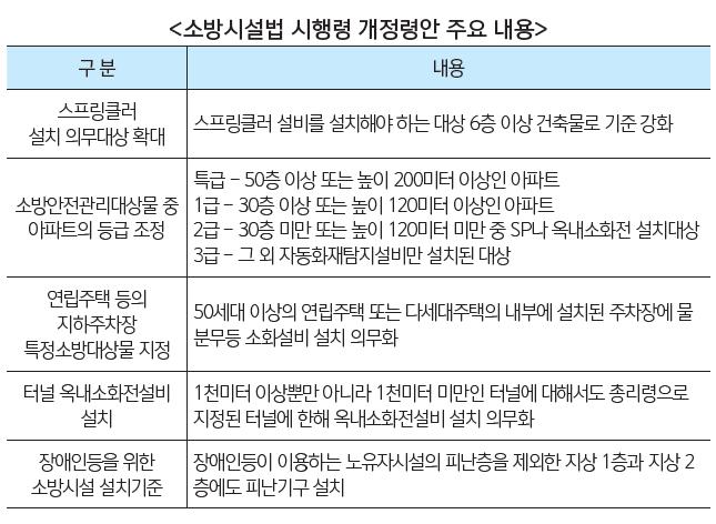 정부는 이와 같은 내용을 포함한 ‘화재예방·소방시설 설치유지 및 안전 관리에 관한 법률 시행령 개정령(이하 소방시설법 시행령)’안을 1월 26일 공포했다. 앞서 정부는 1월 24일 국무회의에서 개정령안을 심의·의결한바 있다.