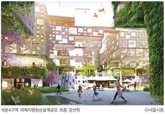 서울시는 3월 2일 세운상가 옥상에서 ‘세운4구역 국제지명현상설계공모’ 최종 당선작 ‘서울세운그라운즈(설계 : KCAP Architects & Planners, 네덜란드)’와 프로젝트 계획을 발표했다. 국내외 8개사가 참여한 이번 공모는 ‘역사적 가치의 존중’, ‘보행중심계획’, ‘경제성 극대화’ 등에 주안점을 두고 심사됐다.