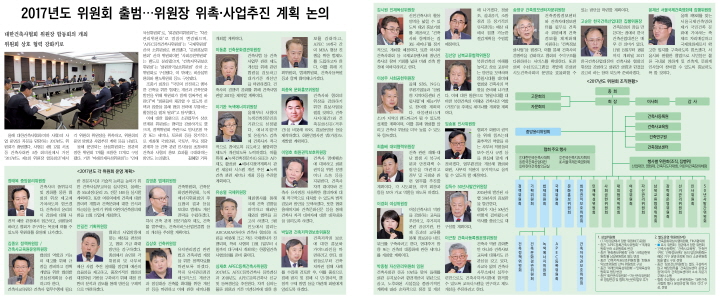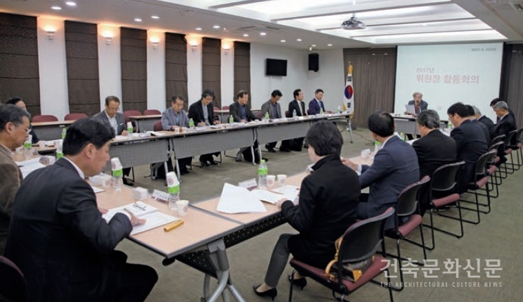 올해 대한건축사협회(이하 사협)의 사업 운영과 자문을 담당하는 2017년도 위원회가 출범했다. 사협은 4월 12일 서초동 건축사회관 3층 회의실에서 가진 ‘2017년도 제1회 위원장 합동회의’에서 각 위원회 위원장을 위촉하고, 위원회의 운영 방향과 사업추진 계획 등을 나눴다.