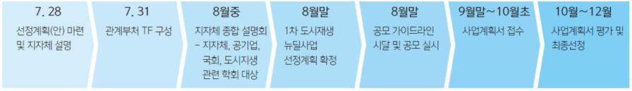 국토교통부 관계자는 “9월말부터 10월초까지 사업계획서를 접수하고 10월과 11월 평가 및 도시재생특별위원회 심의를 거쳐 대상지를 12월 최종 선정한다”며 “둥지 내몰림 방지대책 마련, 부동산 가격동향도 세심히 점검해 추진해나갈 것”이라고 밝혔다.