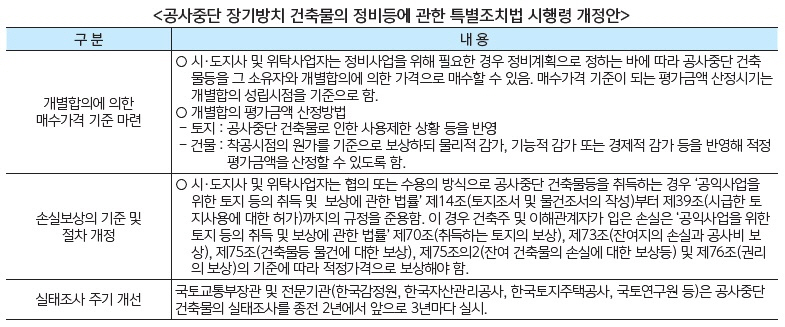 [입법예고]‘공사중단 장기방치 건축물의 정비 등에 관한 특별조치법 시행령 개정안’