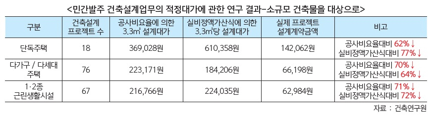 ◆ 현 건축시장 적정대가의 약 20∼25%로 건축물의 설계 이뤄져