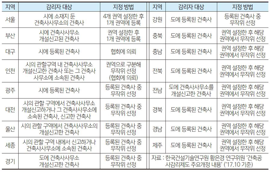 소규모건축물 등에 대해 허가권자가 공사감리자를 지정토록 하는 ‘건축공사 감리제도’가 올해 본격 시행됐다. 적정 감리비 지급을 보장하고 감리자의 독립적인 지위확보를 통해 건축물의 품질과 성능, 안전성을 높인다는 취지다. 작년 8월 4일 도입된 후 올해 1월 1일부터 각 지자체별로 정한 조례에 따라 감리자 명부 작성, 감리자 지정 등의 절차가 진행되고 있으며, 대한건축사협회는 소규모건축물 공사감리 체크리스트 작성 교육을 실시하고 있다.