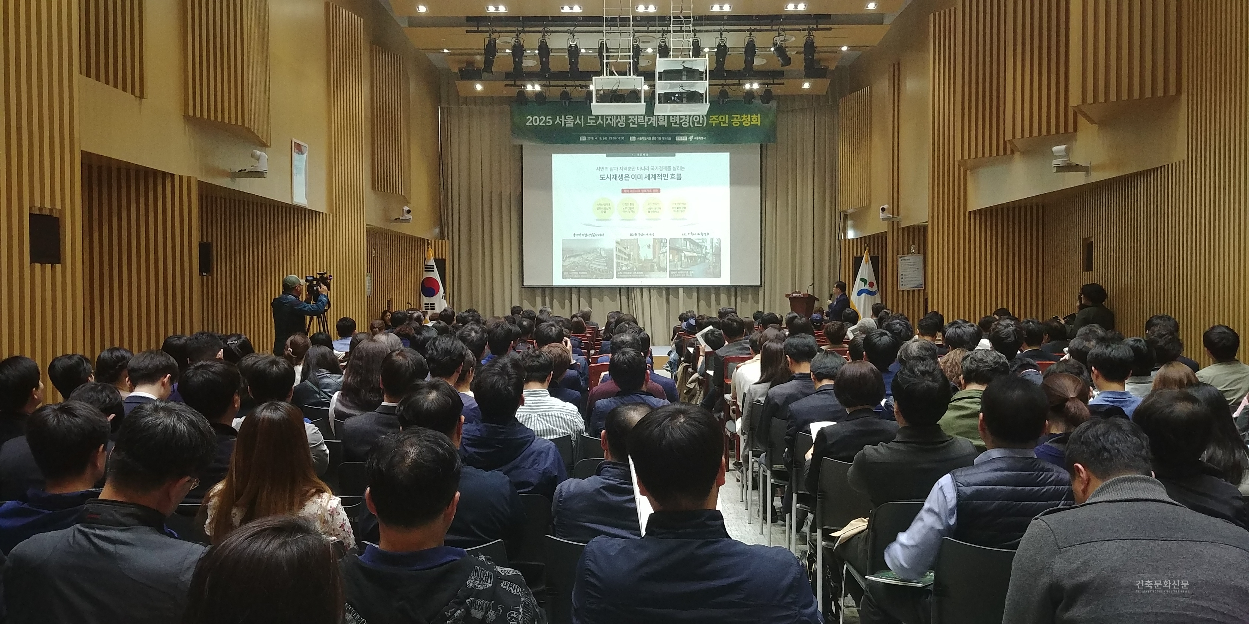 서울특별시는 4월 18일 서울시청 대회의실에서 ‘2025 서울시 도시재생 전략계획 변경(안)’을 발표하고 공청회를 가졌다.