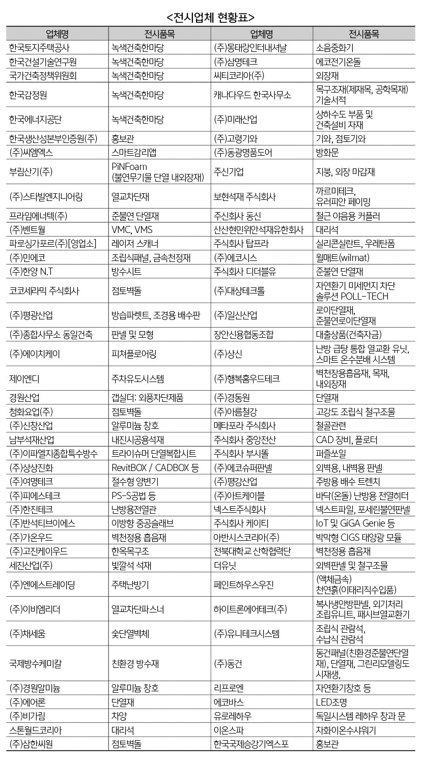 올해에는 최근 단열 기준 강화와 화재 관련 이슈가 되고 있는 에너지 절약 설계 관련 단열재, 마감재, 환기 설비 등 실무에 직접 적용이 가능한 자재들이 대거 출품되어 건축사뿐만 아니라 건축사보와 건축사사무소 직원들의 설계 업무에 직접 도움이 될 수 있는 전시로 구성했다. 기존의 건축사실무교육을 위한 별도의 세미나실 외에도 전시장 내에 160석 규모의 세미나실을 설치해 실무 전문 교육인 ‘에너지 절약설계 관련 자재 활용 교육’과 ‘BF 인증 관련 실무 교육’을 무료로 실시하여 전시회를 참관하고 교육을 받으면서 전문실무교육도 이수할 수 있는 프로그램을 준비했다.