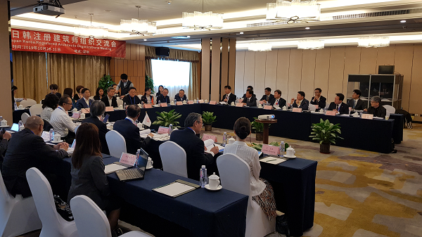 제22차 한중일 건축사협의회 미팅은 10월 30일 그랜드 솔룩스 종유 호텔 2층 컨퍼런스룸에서 열렸다. 건축사 상호인증 정보교환과 정부정책 및 시장 환경의 변화에 대응하는 건축사의 역할과 책임에 관하여 각국 대표는 건축관련 주요 현안을 소개하고 서로의 상황을 공유했다.
