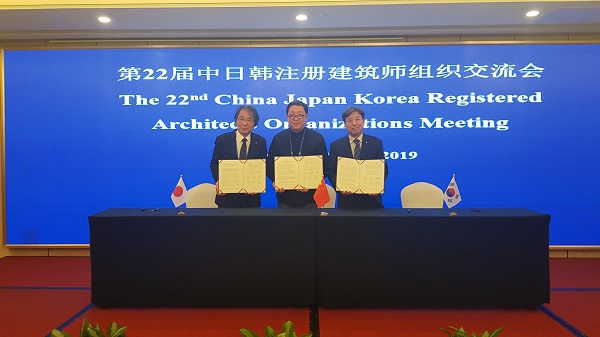 한중일 건축사협의회는 1997년 1월 8일 북경에서 대한건축사협회(KIRA), 중국건축사등록관리위원회(NABAR), 일본건축사회연합회(JFABEA)가 교류협정을 체결한 이래 매년 주최국을 바꿔가며 개최되고 있다. 제21차 회의를 지난해 일본 오사카에서 개최한 뒤 올해 제22차 회의를 중국 심천에서 개최했다. 동아시아의 건축분야 교류협력과 건축시장 개방에 대비한 건축사자격 상호 인정방안, 각국의 건축계 주요 현안 및 건축을 통한 사회적 역할에 대한 협의를 주요 활동으로 하고 있다.