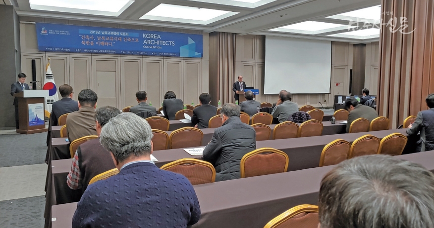대한건축사협회 남북교류협력위원회는 11월 29일 코엑스 컨퍼런스룸에서 2019 남북교류협력 토론회를 개최했다. 이날 토론회는 ‘건축사 남북교류시대 건축으로 북한을 이해하다’라는 주제로 진행됐으며, 석정훈 대한건축사협회 회장, 이정희 대한건축사협회 남북교류협력위원회 위원장, 백정훈 한국건설기술연구원 수석, 변상욱 개성공업지구지원재단 부장, 민경태 통일부 통일교육원 교수, 김준봉 남북교류협력위원회 자문위원, 박찬정 남북교류협력위원회 초대위원장, 오헌근 남북교류협력위원회 부위원장, 이종석 민주평화통일자문회의 자문위원, 황진하 남북교류협력위원회 위원, 토론회 좌장으로 신규철 대한건축학회 통일건축산업위원회 위원이 참석했다.