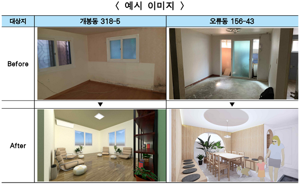 다가구‧다세대주택 반지하 공간 6곳이 지역주민을 위한 커뮤니티시설로 탈바꿈한다. 오랜 기간 비어있던 장소들이라 곰팡이나 습기로 인해 주거하기엔 적합하지 않았던 곳들이다. 구로구 개봉동 주택 반지하 공간은 주민소통방으로, 또 다른 반지하 세대는 주민을 대상으로 하는 다양한 취미, 교육 등 공동체 활성화 프로그램들이 운영된다.