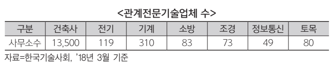 협회는 또한 건축설계용역 입찰 시 전기, 소방, 통신 업무를 분리해 공고하고, 관계전문기술업체와 공동수급협정을 체결하는 시기를 ‘입찰할 때’가 아닌 ‘입찰 낙찰자 확정 후 발주기관과 계약 전’까지로 조정하는 것을 건의사항에 포함시켰다.