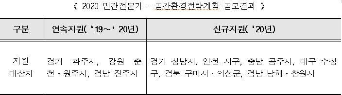 국토부, 2020 민간전문가-공간환경전략계획 수립 지원사업 본격 추진