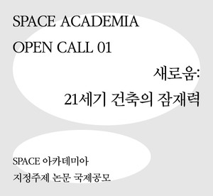 월간 ‘SPACE(공간)’(A&HCI)이 건축 이론 연구 섹션 ‘SPACE 아카데미아’를 통해 지정주제 논문 국제공모를 진행한다. 공모는 3개월마다 새로운 주제를 제시하며, 건축 이론 연구 논문을 모집한다.첫 번째 공모 주제는 ‘새로움 : 21세기 건축의 잠재력’이다. SPACE 아카데미아 편집위원장 정만영(서울과학기술대학교)이 제안한 주제로, 건축에서 새로움의 지위와 의미를 탐구하는 논문을 모집한다. 논문은 SPACE 아카데미아 규정에 맞게 작성해야 하며, 이메일(spaceacademia00@gmail.com)로 접수하면 된다.
