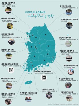 대한건축사협회는 건축 전문가 집단으로 공공과 민간영역에서 맞춤형 사회공헌사업을 진행하고 있다. 협회는 지역사회 문제 해결에서부터 나눔 문화 확산을 통해 이웃에게는 소중한 희망이 되고, 국민들에게는 사회적 리더십을 갖춘 건축 전문가로 거듭나고 있다. 최근 협회는 2024년 시·도건축사회 사회공헌사업 현황을 집계했다. 결과에 따르면 지난해 17개 시·도건축사회는 ▲국민참여행사 ▲행사후원 ▲건축상담 ▲건축문화제 ▲재해·재난 성금기부 ▲장학금 전달에 이르기까지 수많은 사회공헌사업을 전개했다. 일례로 서울특별시건축사회와 충청남·북도건축사회의