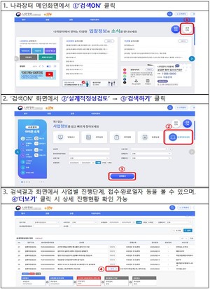 조달청은 11일부터 공공건축물 설계적정성 검토 진행 상황을 나라장터(www.g2b.go.kr)를 통해 별도 인증절차 없이 확인할 수 있도록 공개한다고 밝혔다. 국민과 수요기관은 설계 단계별 검토 현황을 상시 확인할 수 있다.그동안 행정관서, 문화시설, 복지시설 등 공공건축물의 설계검토 과정은 일반에 공개되지 않아 진행 상황을 확인하기 어려웠다. 이번 공개로 국민은 세금으로 추진되는 공공건축물의 설계검토 현황을 직접 확인할 수 있으며, 수요기관은 사업추진 단계에서 검토 진행 여부를 신속히 파악할 수 있다.설계검토 진행 상황은 나라장터