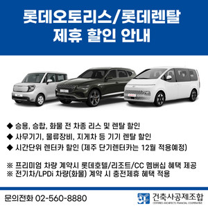 건축사공제조합은 조합원 복지와 편익을 강화하기 위해 지난 11월 6일부터 자동차 리스와 렌탈 제휴 혜택을 새롭게 제공한다고 밝혔다. 이번 제휴는 조합원의 경제적 부담을 줄이고 실질적인 편의를 제공하기 위한 목적으로 시행됐으며, 기존의 다양한 복지 서비스와 함께 제공된다.롯데오토리스는 상용차를 포함한 전 차종 리스를 지원하며, 법인과 개인사업자를 대상으로 맞춤형 정비 서비스와 특장, 래핑, 원스톱 차량 관리 서비스를 제공한다.롯데렌탈 비즈카는 12개월 이상 중고차와 신차를 대상으로 한 장기렌터카 서비스를 제공하며, 16인승 이하 승용