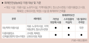 국토교통부가 2025년 화재안전성능보강 지원사업을 최근 공고했다. 사업 기간은 올 1월부터 12월까지이며, 국비 19억3,300만 원이 투입된다. 보조금이 소진될 때까지 신청을 받을 예정이다.이번 사업은 화재에 취약한 건축물의 화재 안전 성능을 보강하는 것을 목표로 하며, 지원 대상은 의료시설, 노유자시설, 지역아동센터, 청소년수련원과 고시원, 목욕장, 산후조리원, 학원 등 일부 다중이용업소 중 화재 취약 건축물이다. 해당 건축물은 3층 이상이며, 가연성 외장재를 사용하고 스프링클러가 설치되지 않은 경우에 해당한다. 다중이용업소의