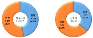 지난해 건설현장 사망사고의 주요 원인은 ‘떨어짐'이었으며, 민간공사의 사망자 천건율(건설공사 1,000건당 사망자 수)은 1.51‰로 공공공사(0.92‰)보다 약 1.5배 높게 나타났다.국토안전관리원이 최근 발표한 ‘2024년 건설사고정보리포트’에 따르면, 지난해 건설공사 안전관리 종합정보망(CSI)에 등록된 전체 사고는 6,768건으로, 이 가운데 사망자가 발생한 사고는 204건이다. 건설기술진흥법 제67조에 따르면, 건설사고가 발생할 경우 공사 참여자는 발주청 또는 인허가기관에 통보하고, 발주청은 조사 결과를 CSI에 입력해 국