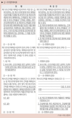 건축물 해체공사와 관련해 해체공사감리자의 보수교육 이수 시기가 명확해지고, 해체공사 완료신고 시 제출서류에 건설폐기물 반출 실적 증명자료가 추가됐다. 국토교통부는 6월 2일 ‘건축물관리법 시행규칙’을 개정·공포, 이날부터 시행한다고 밝혔다.개정 시행규칙 제13조의2 제1항 제2호에 따르면, 보수교육은 ‘신규교육을 받은 날부터 3년마다 받되, 구체적인 이수 시기는 매 3년이 되는 날을 기준일로 하여 그 기준일 1년 전부터 그 기준일까지’로 한다.해체공사 완료신고에 필요한 서류도 확대됐다. 개정 시행규칙 제16조 제1항은 기존 ‘법 제