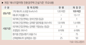 국토교통부가 ‘에너지절약형 친환경주택 건설기준’을 개정해 공공 공동주택뿐 아니라 민간 공동주택에도 제로에너지건축물 기준을 적용, 친환경주택 건설기준을 대폭 강화할 예정이라고 4월 11일 밝혔다. 이는 온실가스 감축과 국민의 에너지 주거비 부담 완화를 목표로 설정된 정책의 일환이다. 개정안은 4월 12일부터 5월 2일까지 행정예고 기간을 거쳐 내년부터 시행될 예정이다.개정안에 따르면, 신축 공동주택(주택건설사업계획 승인을 얻어 건설하는 30세대 이상)은 이제 제로에너지 5등급 인증 기준을 충족해야 한다. 이 등급은 에너지효율등급 1+