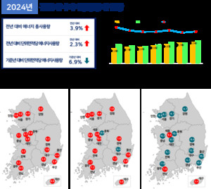 2023년 대비 지난해 건축물 에너지 총사용량이 늘어난 것으로 확인됐다. 국토교통부는 기존 건축물에너지 총사용량과 함께 통계청으로부터 국가 승인통계로 인정받은 용도별·지역별 원단위 지표를 최초 공개한다고 밝혔다. 원단위 지표는 단위면적당 건축물에너지 사용량에 대한 중앙값으로, 건축물의 용도별·지역별 에너지사용량의 표준값으로 활용할 수 있다.대표적으로 ’24년 공동주택의 표준 원단위 값은 중부지역은 136kWh/㎡, 남부지역은 111kWh/㎡이고, 업무시설은 중비지역이 159kWh/㎡, 남부지역은 102kWh/㎡인 것으로 나타났다.’