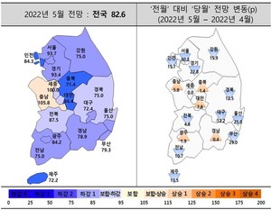 우크라이나 전쟁에 따른 건축자재 가격 인상 등으로 투자 심리가 악화돼 주택사업 경기가 급락하고 있는 것으로 나타났다.주택산업연구원은 지난달 17일 주택사업경기전망지수를 발표했다. 자료에 따르면 5월 주택사업경기전망지수는 전달대비 18.6포인트 하락한 82.6으로 나타났다. 주택사업경기전망지수는 주택사업자들에게 주택 경기 전망을 조사해 지수화한 수치로 100보다 높으면 경기를 긍정적으로, 낮으면 부정적으로 전망한다는 의미를 담고 있다.지역별로는 수도권이 지난 달 113.3에서 5월 90.5로 전월대비 22.8포인트 하락했다. 서울은
