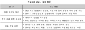 원희룡 국토교통부 장관은 5월 30일 세종시 6-3생활권 M2블록 공동주택 건설현장을 찾아 건자재 급등에 따른 대응방안을 집중 점검했다.이번 건설자재 공급망 점검회의에서는 최근 건설자재 가격 급등으로 인한 현장 애로와 건의사항을 청취하고, 주택 등 건설공사가 차질 없이 진행되기 위한 제도개선 방안을 논의했다.정부는 이날 공공공사에 대해 관급자재 공급을 안정화하고, 현행 물가 변동 제도 개선을 적극 추진한다고 밝히며, 단품슬라이딩(자재 가격변동률이 15% 이상인 경우 해당 자재 계약금액 조정) 등 현행 공사비 조정제도에 대한 개선 여