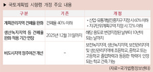 국토교통부는 계획관리지역의 건폐율 완화와 비도시지역의 정주여건 개선에 중점을 둔 ‘국토의 계획 및 이용에 관한 법률 시행령'을 5월 28일 개정·공포하고 즉시 시행한다고 밝혔다.개정 시행령에 따르면, 계획관리지역 내 공장이 체계적이고 계획적으로 입지할 수 있도록 건폐율 완화 범위가 확대된다. 기존의 건폐율 ‘40퍼센트 이하’에서 계획관리지역에 산업·유통개발진흥지구가 지정된 경우 ‘60퍼센트 이하’, 지구단위계획구역이 지정된 경우 ‘72퍼센트 이하’로 각각 상향 조정된다.또한, 생산녹지지역 등으로 용도가 변경된 지역의 기존 공장 소유