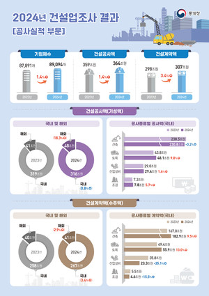 지난해 국내외 건설공사액은 346조 원으로 전년 대비 1.4%(5조 원) 증가했지만, 건축부문은 3.2% 감소한 것으로 나타났다. 25년 만에 최대 감소 기록이다.8월 22일 통계청은 ‘2024년 건설업 조사 결과’를 발표했다. 공사실적 부문 결과에 따르면 지난해 국내 공사액이 전년보다 0.8% 감소한 316조 원으로 집계됐다. 2010년 이후 가장 큰 감소 폭이다. 세부적으로 보면 건축 공사액 감소폭(-3.2%)이 1999년(-7.8%) 이후 최대 감소 폭을 보였다. 민간 부문에서 주택 등 부동산 개발이 감소한 탓이다.다만 작년