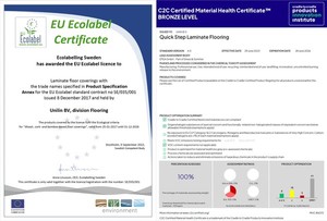 환경에 대한 소비자들의 선호로 현재 시중에 판매되는 모든 제품들은 다양한 친환경인증을 획득하려 한다. 바닥재 시장도 예외는 아니다.바닥재에 대한 친환경 인증이 일반화되지 않았던 시기부터 유럽연합이 인증하는 EU-에코라벨(EU Ecolabel)을 최초로 받았던 유니린(Unilin)의 퀵스텝(Quick-step)이 최근 ‘크래들 투 크래들(Cradle to Cradle Certified®)’ 인증서를 업계 최초로 획득했다.퀵스텝이 보유한 EU-에코라벨과 C2C 인증서는 원자재, 생산 과정, 완제품의 유해 화학물질 포함 여부, 폐기 과정