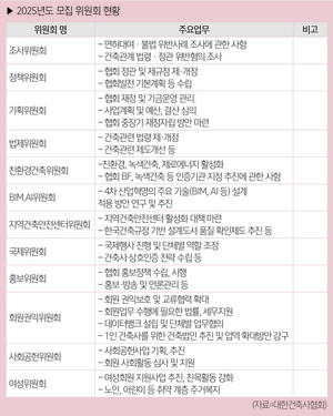 대한건축사협회가 2025년도 협회 위원회 위원을 모집한다. 협회는 정관 제31조에 따라 운영되는 20개 위원회에서, 운영·사업·예산 등에 대한 회장의 자문 및 제안을 담당할 위원을 모집할 계획이다.위원회는 운영 규정에 따라 위원장 1인, 위원 8인 이내, 자문위원 3인 이내로 구성되며, 임기는 1년이다. 모집 대상은 협회 정회원으로, 협회 운영과 발전에 기여하고자 하는 회원을 대상으로 한다.위원회 신청은 오는 3월 28일(금) 오후 6시까지로, 지원자는 신청서를 작성해 이메일(kira@kira.or.kr)로 제출하면 된다. 위촉 대