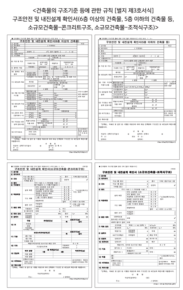 2019년 3월 국토교통부에서 제정한 ‘건축물 내진설계기준’에 따르면 ‘용도변경으로 인해 구조물이 건축물의 중요도 분류에서 더 높은 내진 중요도 그룹에 속하는 경우에 이 구조물은 변경된 그룹에 속하는 구조물에 대한 하중기준을 따라야 한다’고 규정되어 있다. 구조 변경의 경우에도 ‘기존 구조물의 구조변경으로 인하여 이 기준에 따라 산정한 소요강도가 기존 부재의 구조내력을 5% 이상 초과하는 경우에는 해당 부재에 대하여 현재 기준을 만족하도록 구조보강 등의 조치를 하여야 한다’고 규정한다. 즉, 모든 용도변경 시 구조안전 확인서를 첨부해야 하는 것이 아니라, 이러한 상황에 해당하는 경우 이에 적합한 검토가 수반되면 된다.